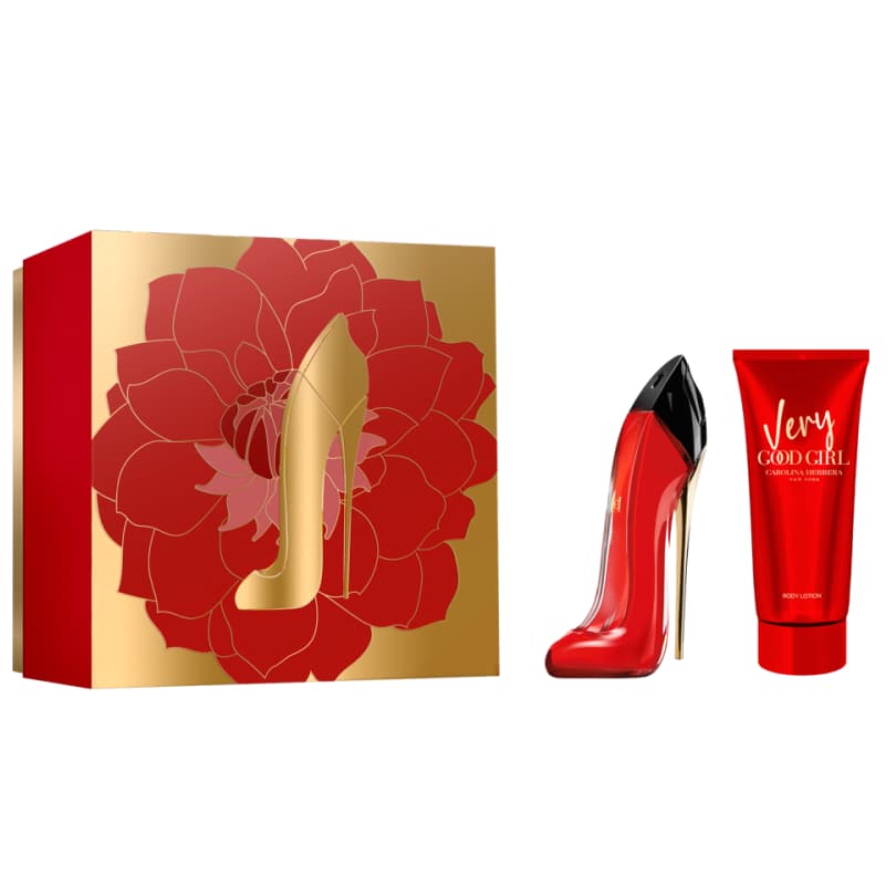 Capturée dans son emblématique flacon en forme de talon aiguille stiletto rouge vif, l'Eau de Parfum Very Good Girl 80 ml est logée dans un coffret Carolina Herrera et accompagnée d'une crème pour le corps 75 ml subtilement parfumée.